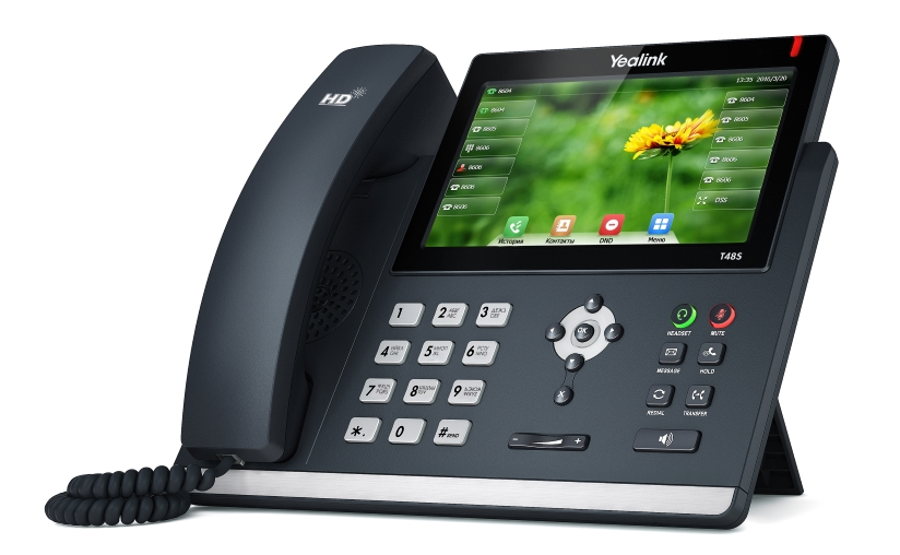 Yealink SIP-T48S — это корпоративный телефон нового поколения, отличающийся ультра- элегантным бизнес-дизайном и продвинутыми техническими характеристиками. Сенсорный цветной LCD-экран с диагональю 7 дюймов помогает сделать работу с телефоном приятной и удобной. Также возможно подключение беспроводной гарнитуры с помощью USB-адаптера Yealink BT40. Значения 29-ти программируемых кнопок подписываются непосредственно на экране телефона, избавляя пользователей от бумажных носителей на корпусе телефона и необходимости заполнять их вручную. Телефон идеально подходит для руководителей высшего звена, сотрудников, заботящихся о своем статусе, и просто бизнесменам, выбирающим и качество, и стиль.