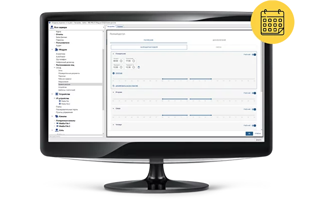 - Гибкая настройка рабочих графиков и графиков доступа для сотрудников
