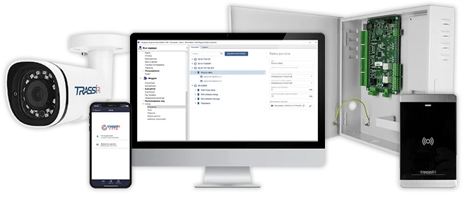 TRASSIR СКУД — собственная система контроля и управления доступом, базирующаяся на платформе TRASSIR. Позволяет управлять доступом на территорию и в помещения - кому, когда и куда разрешить доступ, будь то человек или транспортное средство. Позволяет регистрировать события прохода/проезда, строить различные отчёты, в том числе по учёту рабочего времени. Поддерживает различные способы идентификации - карты, pin коды, доступ по лицу и номеру транспортного средства. В лицензию уже включено подключение одного устройства.