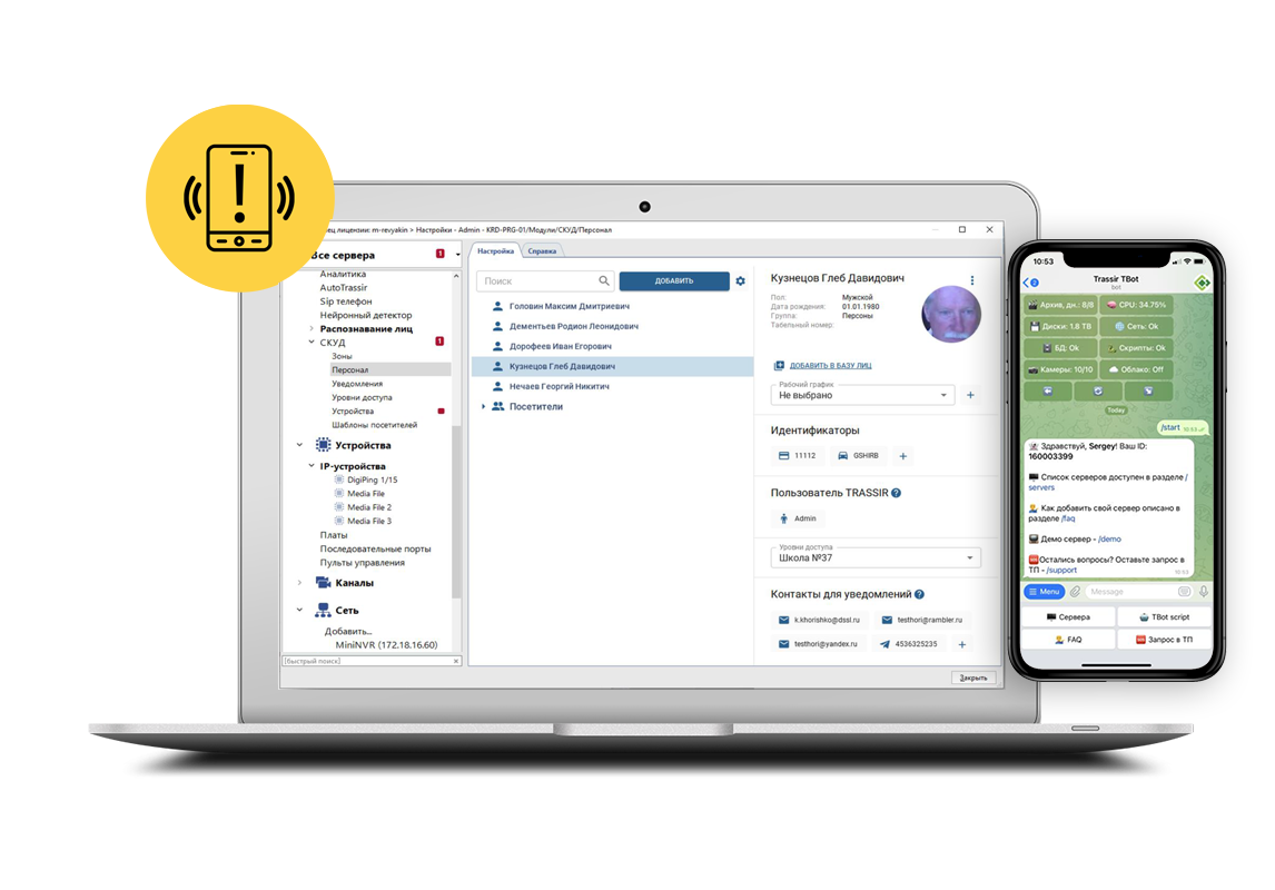 Для оперативного контроля доступа в TRASSIR СКУД можно настраивать уведомления о различных событиях.